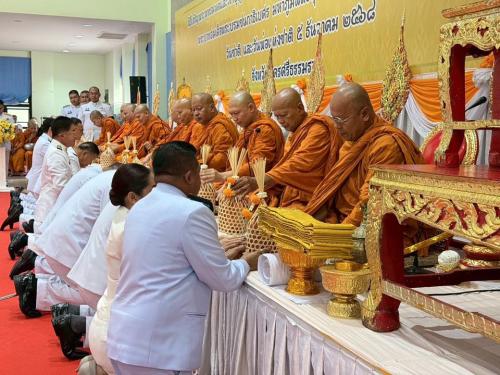 นายสมชาย ลีหล้าน้อย ผู้ว่าราชการจังหวัดนครศรีธรรมราช พร้อมด้วย นางสาววันษา ลีหล้าน้อย นายกเหล่ากาชาดจังหวัดฯ นางวจิราพร อมาตยกุล, นายสุวัฒน์ จันทร์สุข นายวิทยา เขียวรอด และนายชาคริต สุรณัฐกุล รองผู้ว่าราชการจังหวัดนครศรีธรรมราช นำคณะผู้บริหาร หัวหน้าส่วนราชการ ข้าราชการ ศาล ทหาร ตำรวจ เจ้าหน้าที่ และพสกนิกรชาวนครศรีธรรมราชทุกหมู่เหล่า ร่วมประกอบพิธีเจริญพระพุทธมนต์และทำบุญตักบาตรถวายพระราชกุศล เนื่องในวันคล้ายวันพระบรมราชสมภพ พระบาทสมเด็จพระบรมชนกาธิเบศร มหาภูมิพลอดุลยเดชมหาราช บรมนาถบพิตร ตรงกับวันชาติ และวันพ่อแห่งชาติ 5 ธันวาคม 2568 เพื่อแสดงออกถึงความจงรักภักดีและน้อมสำนึกในพระมหากรุณาธิคุณอันหาที่สุดมิได้