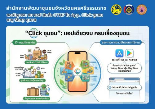 āđāļāļāļāļĨāļīāđāļāļāļąāļ Click āļāļļāļĄāļāļ āļāļĢāļ°āļāļāļāļāđāļ§āļĒ 13 āđāļĄāļāļđāļāļĢāļīāļāļēāļĢ “āđāļāļāđāļāļĩāļĒāļ§āļāļ āļāļĢāļāđāļĢāļ·āđāļāļāļāļļāļĄāļāļ” āđāļāđāđāļāđ 1) Shop āļāļļāļĄāļāļ 2) OTOP Today 3) āļāļāļāļāļļāļāļāļąāļāļāļēāļāļāļāļēāļāļŠāļāļĢāļĩ 4) āļāļ§āļēāļĄāļĢāļđāđāļāļļāļĄāļāļ 5) āļāļĢāļēāļāļāđāļāļļāļĄāļāļ 6) āļĄāļĩāļāļļāļ 7) 108 āļāļēāļāļĩāļ 8) CDD āļāļēāđāļāļĩāđāļĒāļ§ 9) āđāļāļāļŦāļāļāļāļāļē 10) āļāļđāļāļāđāļāļĒ 11) āļāļđāļāļļāļĄāļāļ 12) Big Data āđāļĨāļ° 13) CDD AI