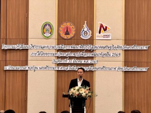 นายสมชาย ลีหล้าน้อย ผู้ว่าราชการจังหวัดนครศรีธรรมราช มอบหมาย นายวิทยา เขียวรอด รองผู้ว่าราชการจังหวัดนครศรีธรรมราช เป็นประธานเปิดกิจกรรมเวทีสัมมนาวิชาการ และความร่วมมือการพัฒนาพืชโกโก้สู่อนาคตเศรษฐกิจจังหวัดนครศรีธรรมราช ภายใต้โครงการมหาวิทยาลัยราชภัฎเพื่อการพัฒนาท้องถิ่น 2569 ซึ่งเป็นการลงนามบันทึกข้อตกลงความร่วมมือ MOU ระหว่างมหาวิทยาลัยราชภัฎนครศรีธรรมราช กับองค์กรปกครองส่วนท้องถิ่น จำนวน 6 พื้นที่ โดยมีนางสาวนวภัทร หอมหวล พัฒนาการจังหวัดนครศรีธรรมราช และหัวหน้าส่วนราชการจังหวัดนครศรีธรรมราช เข้าร่วมเป็นสักขีพยาน